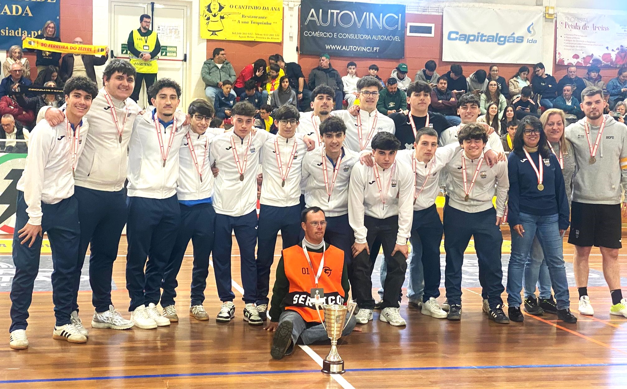 A equipa de Juniores do SC Ferreira Zêzere recebeu no sábado, 28 de fevereiro, as medalhas e a taça de Campeão Distrital de Futsal do seu escalão referente à época 2025/2026. A cerimónia decorreu no Pavilhão Municipal de Ferreira do Zêzere.